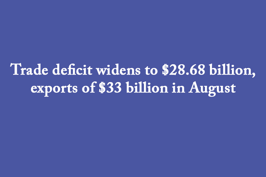 The country's exports declined by just 1.15 per cent to $33 billion in August...